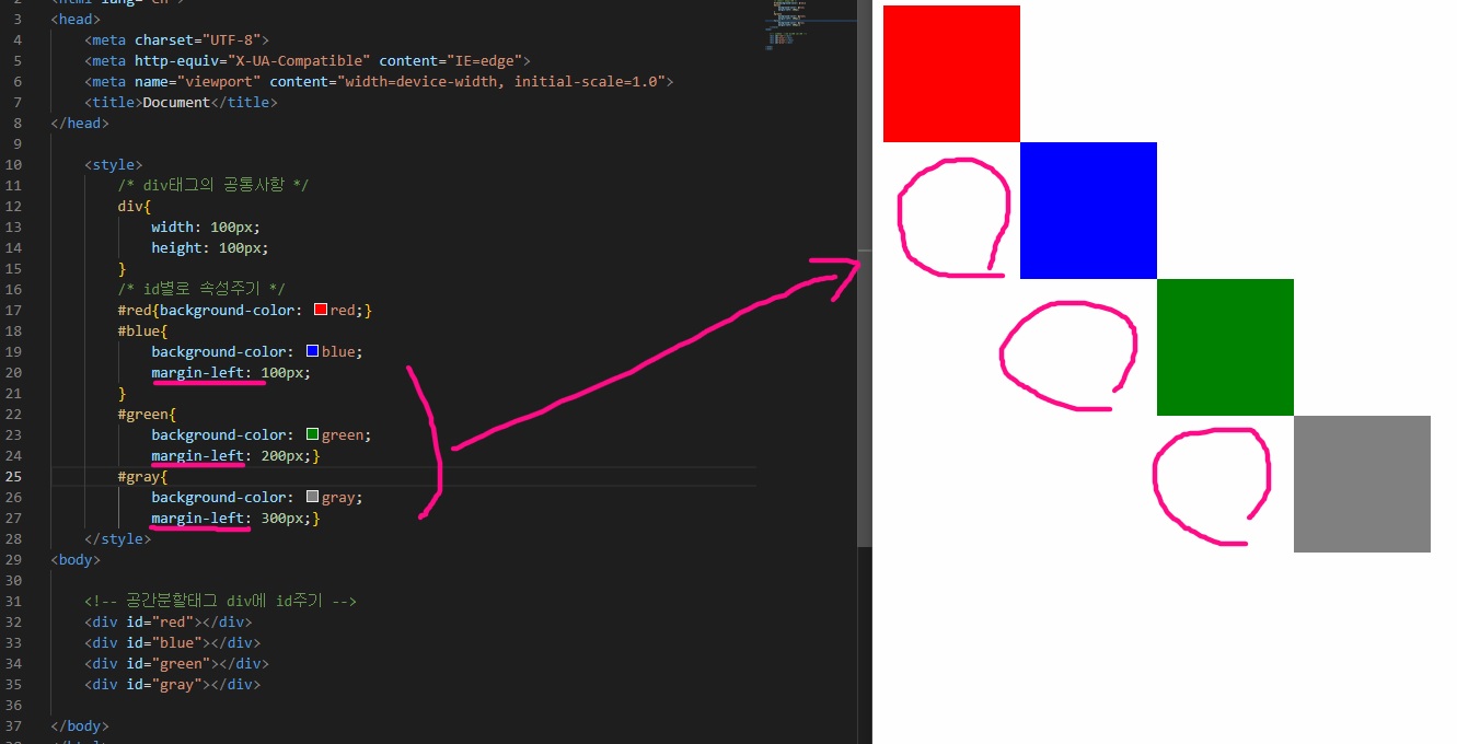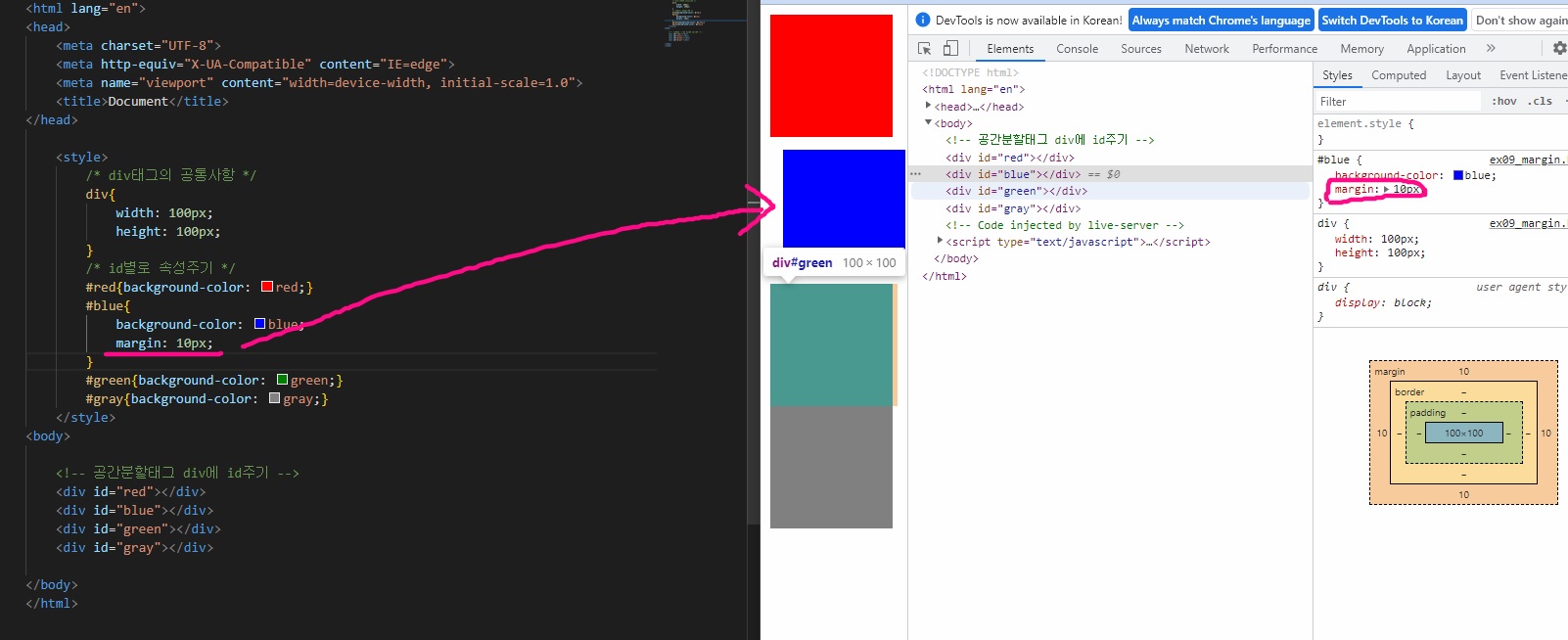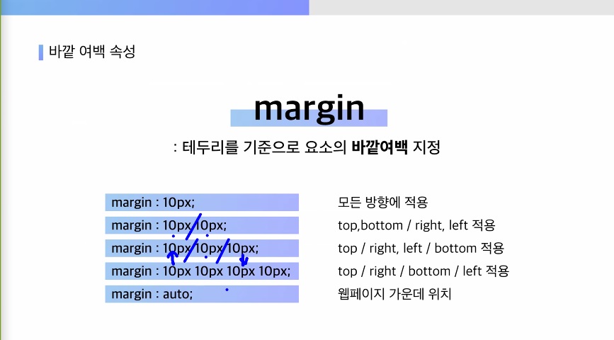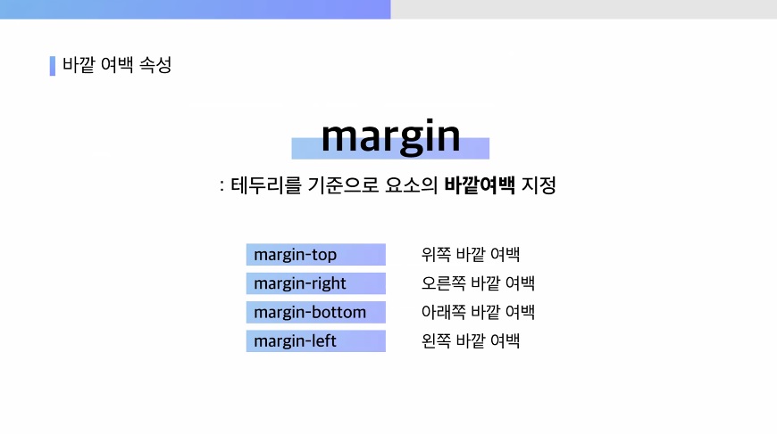 margin 속성으로 바깥 여백이 들어간 상태를 확인할 수 있음