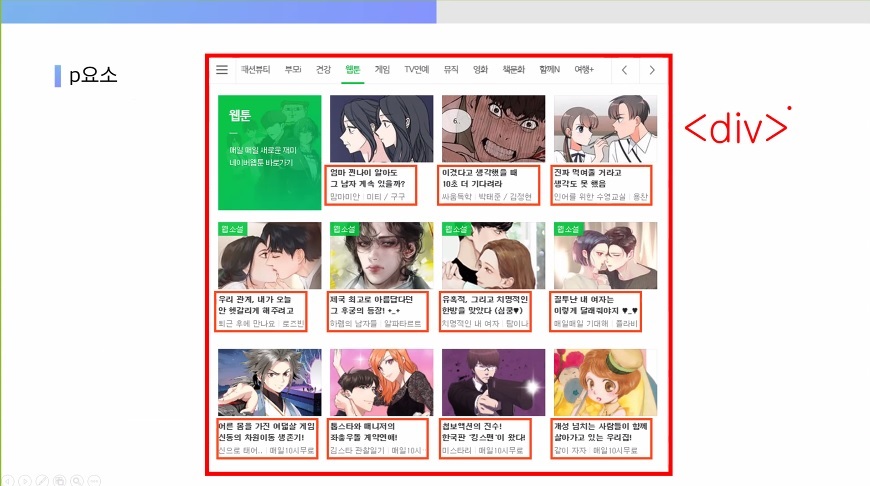 -- 공간의 효과적 사용을 위해 분할해주는 태그