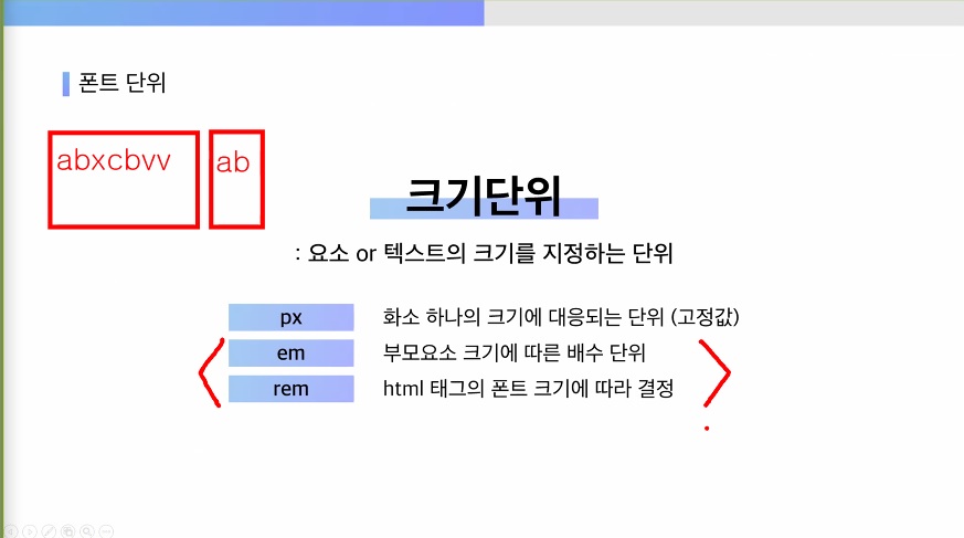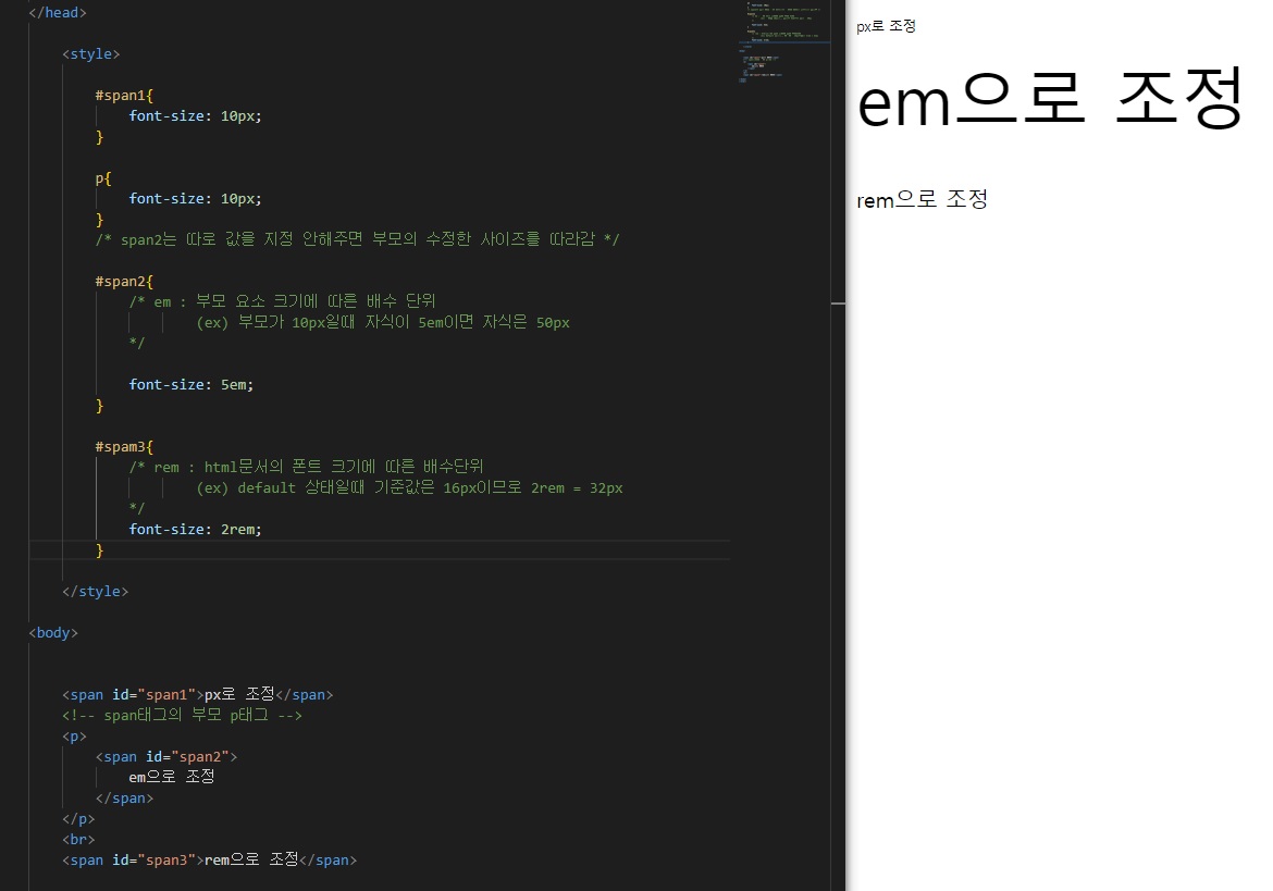rem : html태그 폰트 크기에 따라 결정 (웹페이지 기본 설정에 따라 곱하기)