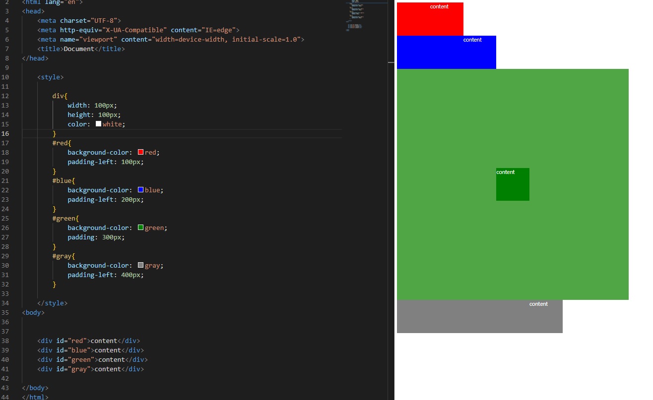 pading 값이 변해도 실제 content가 차지하는 크기는 변하지 않음을 볼 수 있음