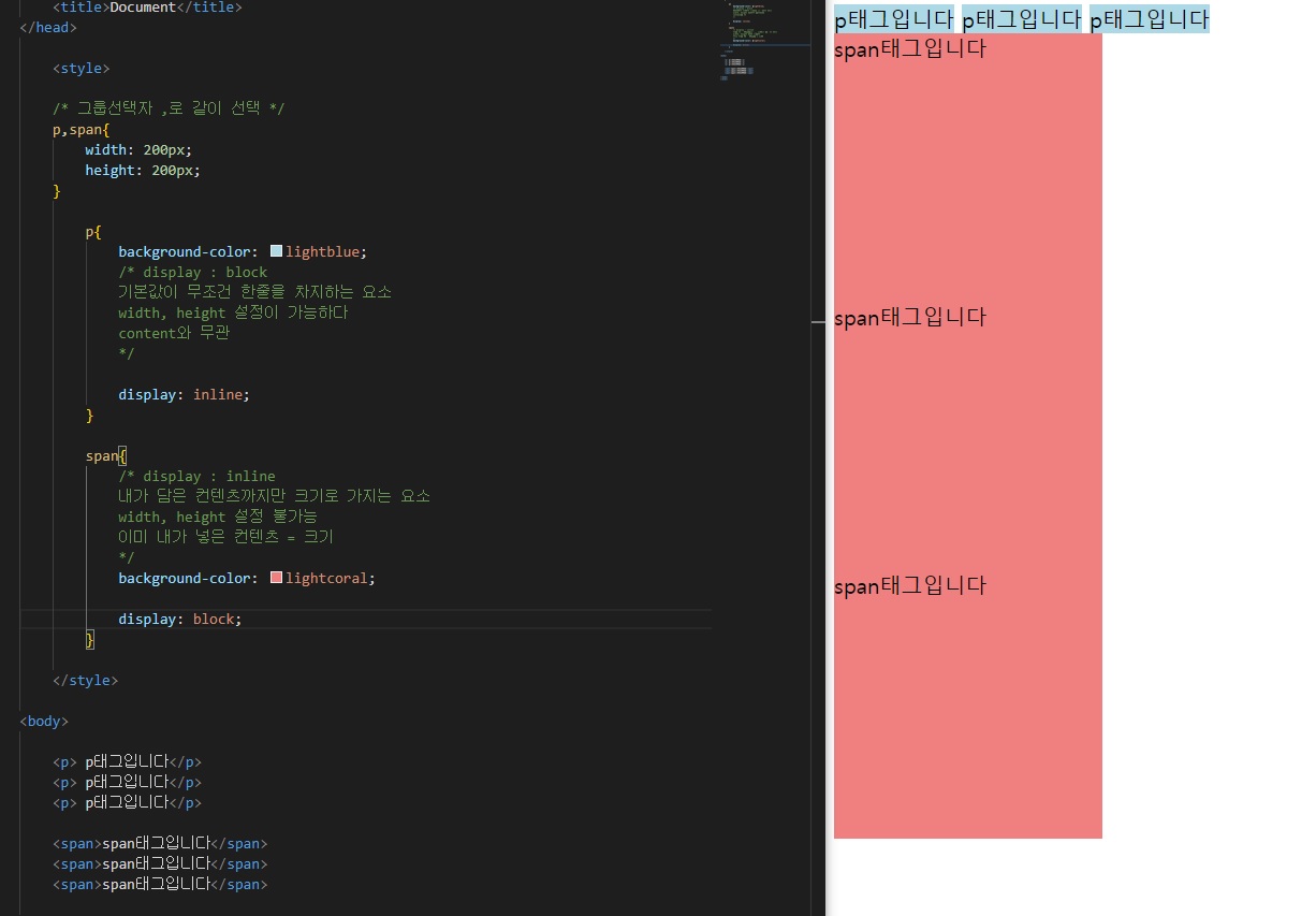 <p>태그와 <span>태그는 위처럼 바꿔줄 수 있음