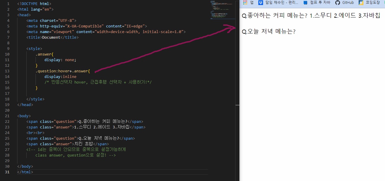 display : inline을 hover 반응선택자로 커서가 올라갔을때만 보이게 설정