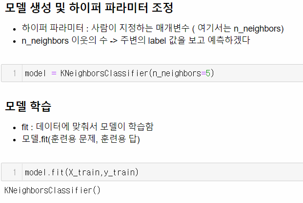 KNeighborsClassifier(n_neighbors=?)으로 모델 생성
