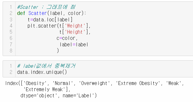 plt.scatter(x좌표 리스트, y좌표 리스트) 산포도그래프
