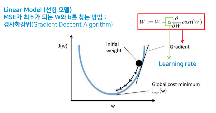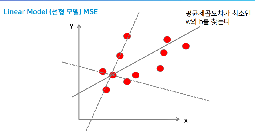 이때 여러 샘플들을 이용해 최적의 w(가중치)와 b(절편을 찾기위해,