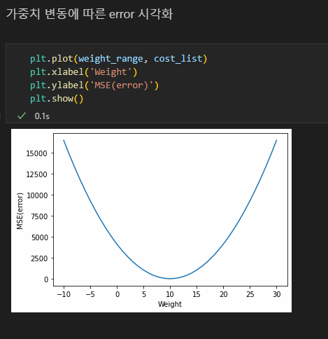 mse공식을 사용해서 오차값을 계산하는 cost함수 (비용함수) :