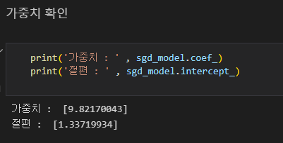 sgd모델명 = SGDRegressor (하이퍼 파라미터 값)
