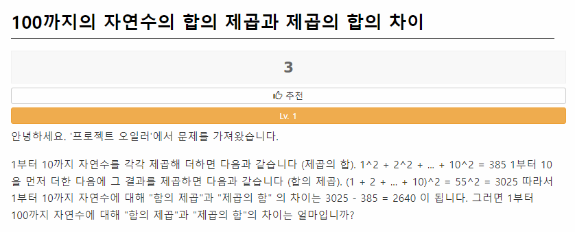 | Multiples of 3 and 5 (1000미만의 자연수에서 3,5의 배수의 총합을 구하라) (0) | 2022.06.13 |