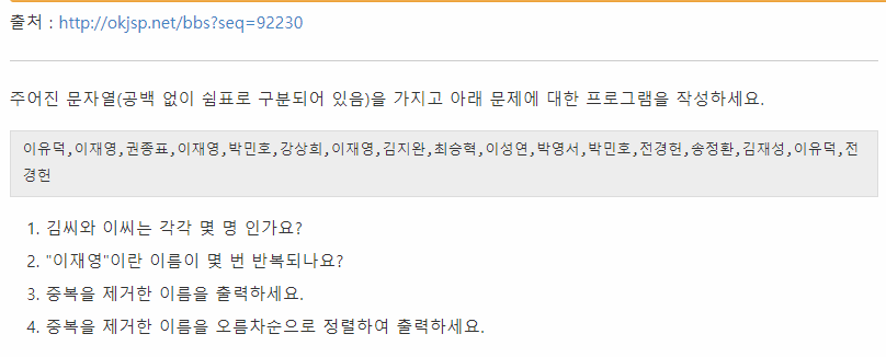 split함수로 배열 str에 쉼표를 기준으로 잘라서 담음