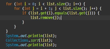 첫번째 for문의 i와 두번째 for문의 j를 각각 비교해서 중복값이 있으면 j를 배열에서 제거함.