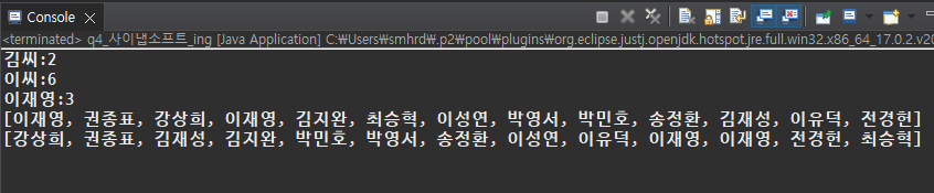 equals로 일치하는 이름을 마찬가지로 cnt변수에 증감연산자를 서서 세어줌