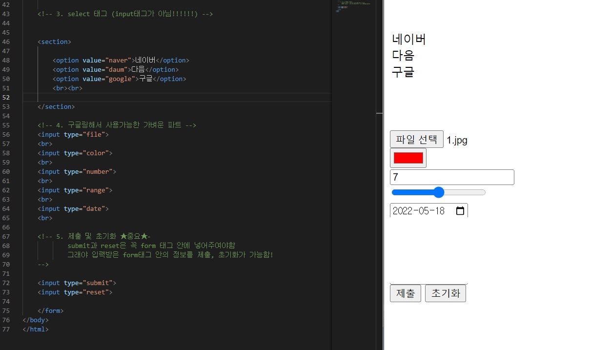 submit과 reset은 꼭 form 태그 안에 넣어주여야함