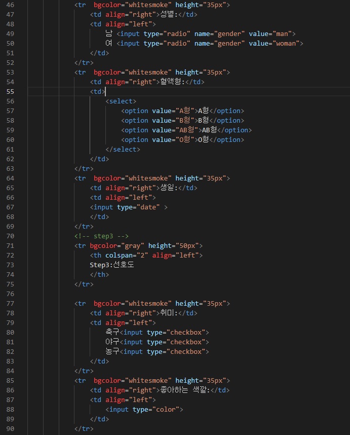 7. 선택을 확인하는 checkbox와 radio 속성 (★name과 value속성을 주는것이 필수인 타입★)