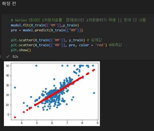 linear_model.predict(훈련셋의 'LSTAT") 으로 예측해줌